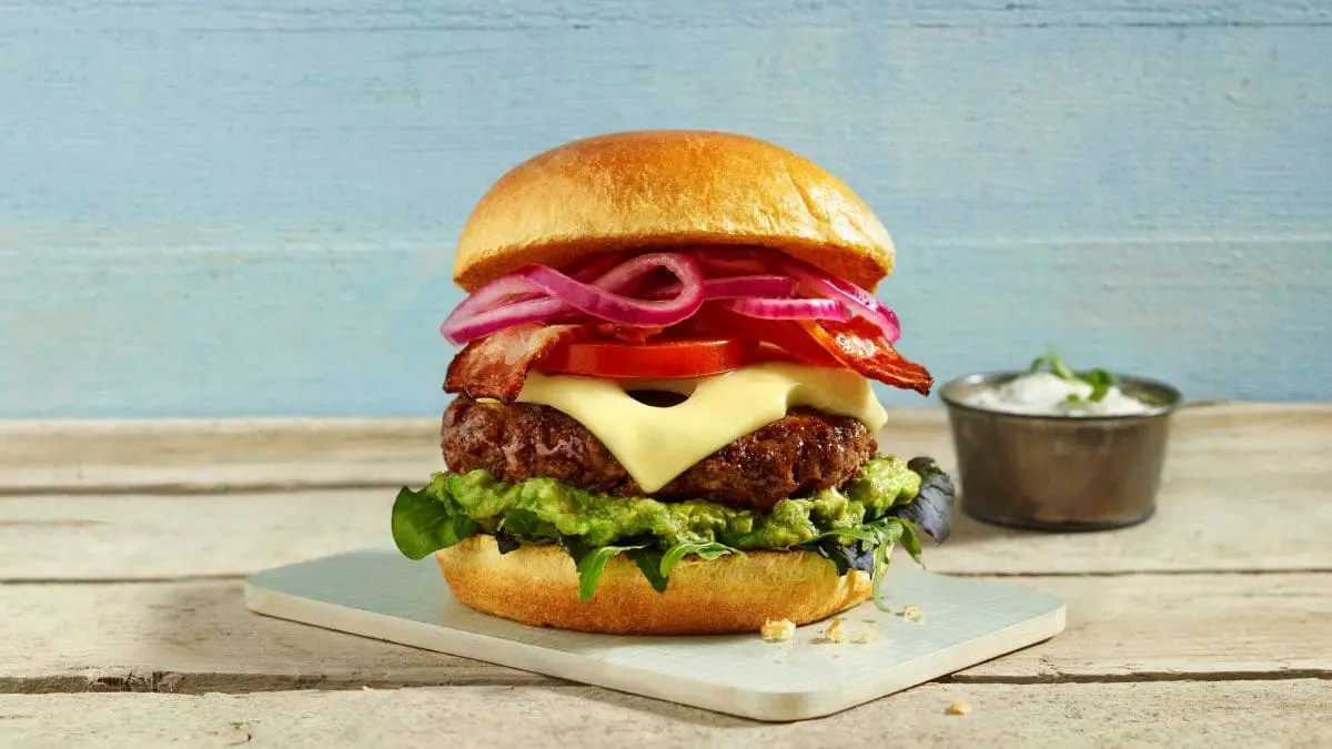 Når sulten melder seg og grillen er varm, er en hamburger med Jarlsberg® kun få minutter unna. Digg burger med avokadokrem, bacon og syltet rødløk.
