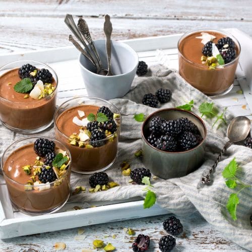 En staslig dessert servert i høye glass med friske bær. Toppet med dine favorittbær er dette perfekt avslutning på et bedre måltid! Husk at moussen trenger å stå kaldt en times tid.