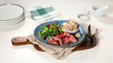 Tykke skiver med roastbeef, blir til god middag med en syrlig og kremet potetsalat til. Server sylteagurker og frisk salat til.