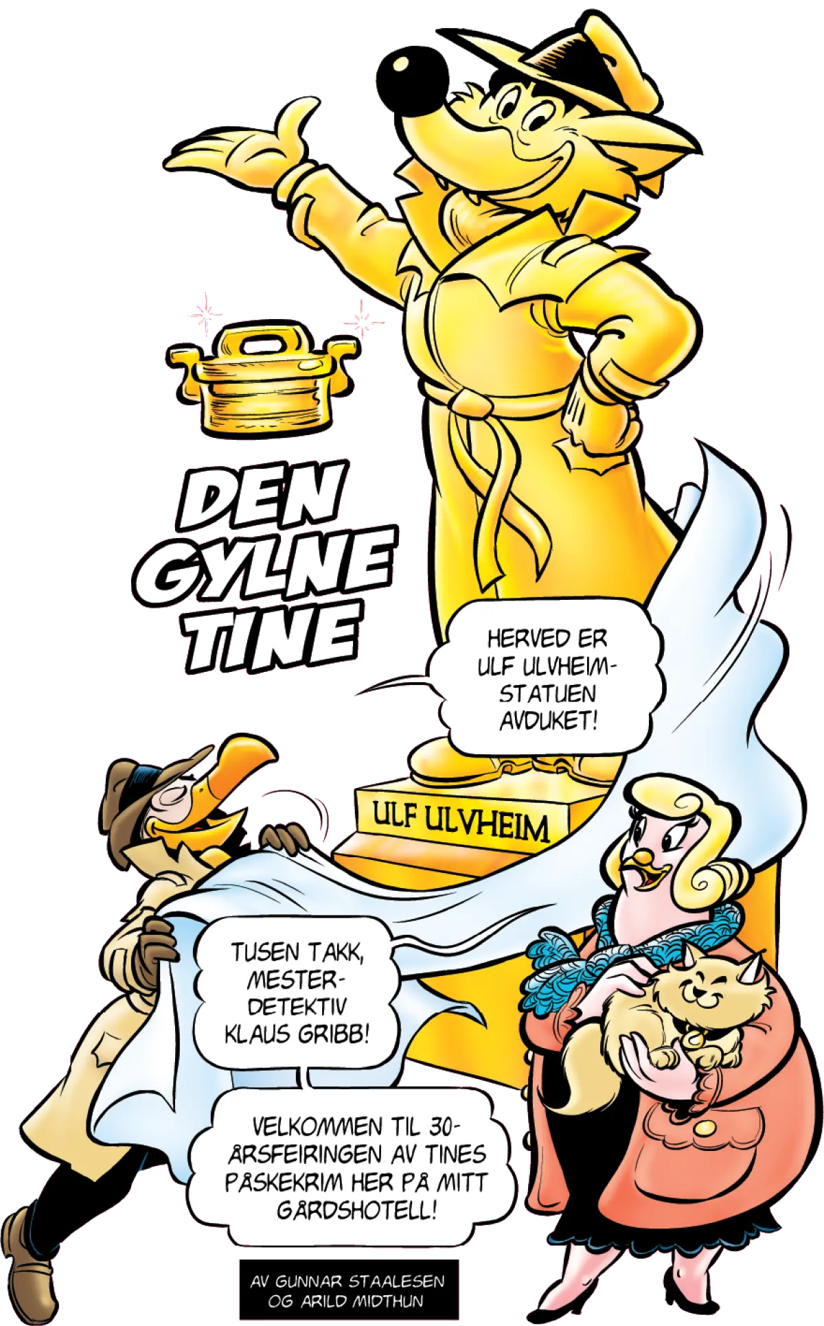 Hvem av de mistenkte tror du stjal den gylne tinen? Trykk på figuren for å velge.