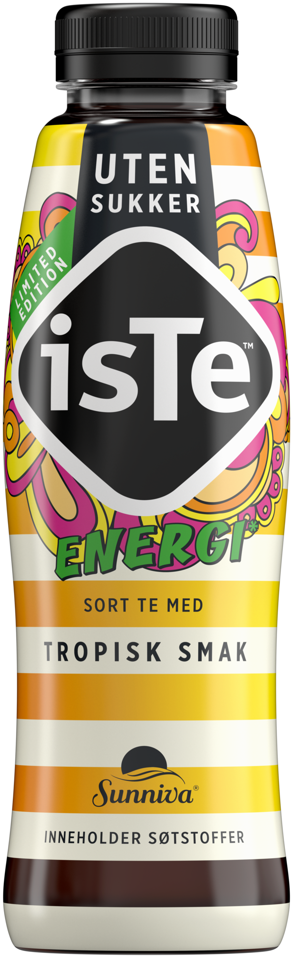 Denne spennende nyheten kan regnes som iste kategoriens eneste svar på den populære energidrikken. En ny limited edition fra Sunniva® isTe™ med tropisk smak og energi, som inneholder koffein (70 mg koffein per flaske). Drikken er tilsatt vitaminene niacin, Vitamin B6 og folsyre som bidrar til å redusere tretthet og utmattelse.