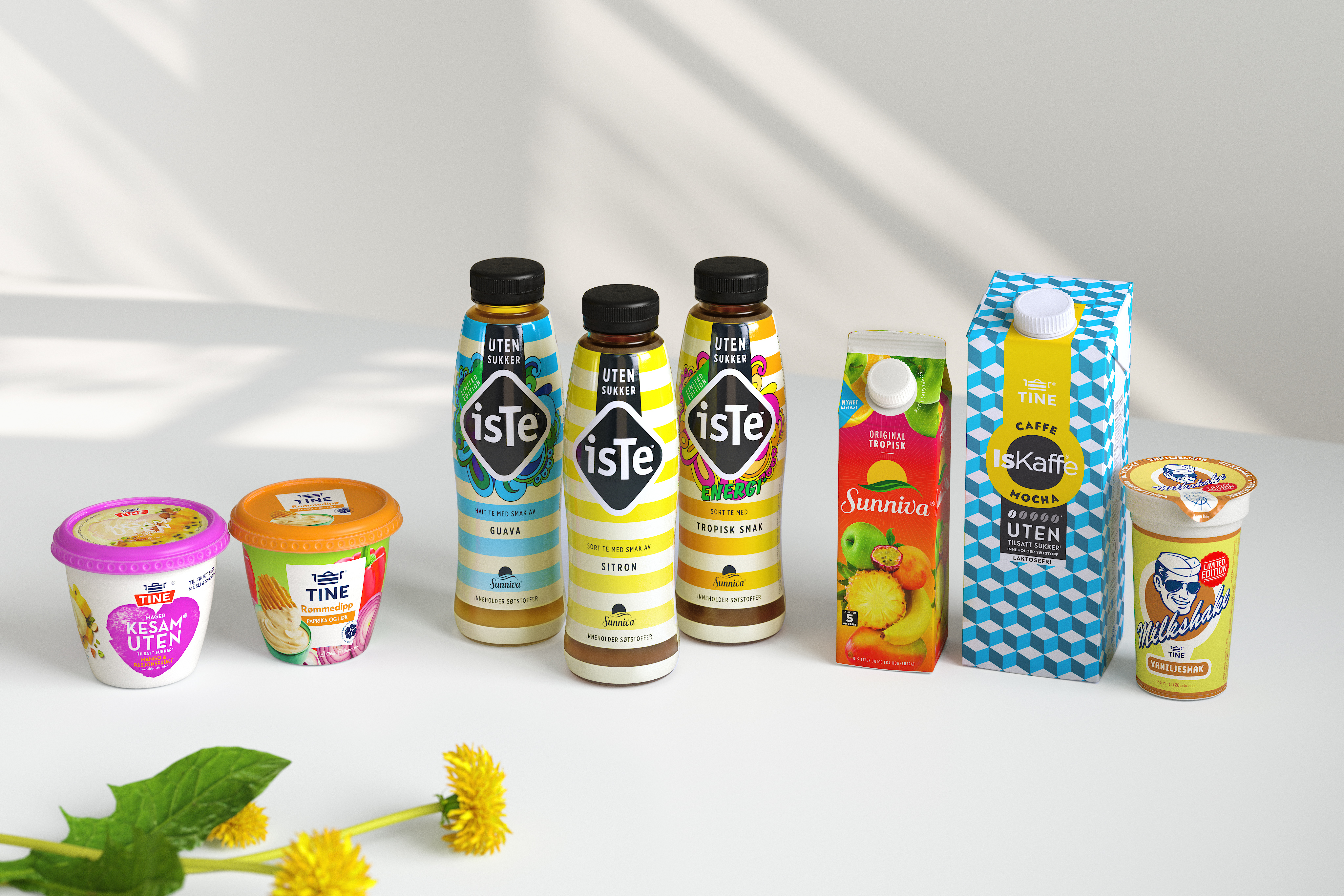 Sammen med sola lanserer TINE flere fristende nyheter, og ønsker noen tidligere favoritter velkommen tilbake. Det er høysesong for forfriskende drikker og TINE byr på flere nye smaker på iste, en deilig vaniljemilkshake og en ferdig rømmedipp klar for å nytes.