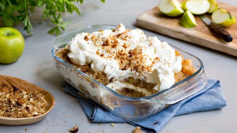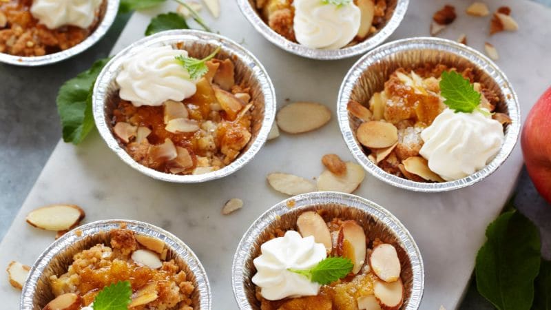 Det enkle er ofte det beste, som denne oppskriften på smuldreeplekake. Den lages på under en halvtime, og kan enten stekes i små aluminiumsformer, eller i en stor kakeform. Smuldreeplekaken smaker godt med vaniljesaus eller litt pisket krem til.