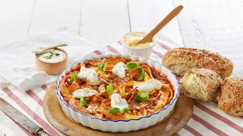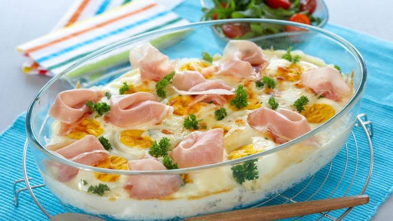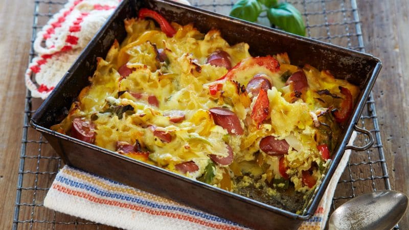 Dette er en oppskrift på en smakfull formrett som hele familien kommer til å elske. I denne gratinerte middagen passer det fint å bruke restemat, som salamipølse, kokt skinke og lignende.