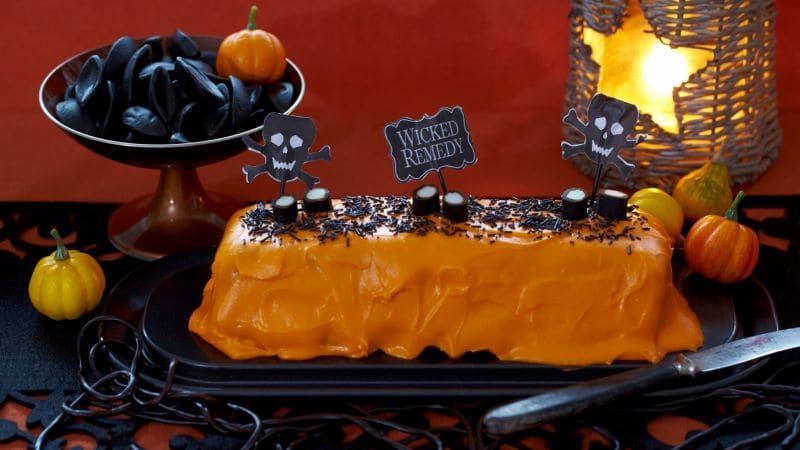 Oppskrift på orange kake til halloween inspirert av gresskaret. Med glasur av deilig kremost med vaniljesmak og litt pynt på toppen, er du og hele familien klare for årets skumleste kveld. Bøøøø!