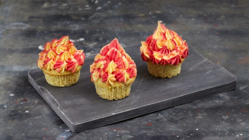 Oppskrift på vakre cupcakes formet som små fakler. Oppskriften er innsendt av Camilla Lindholm, og ble valgt ut som en av finalistene i kakekonkurransen til vinter-OL i Sotsji. Lag din egen fakkelstafett og kom i OL-stemning med disse søte småkakene.