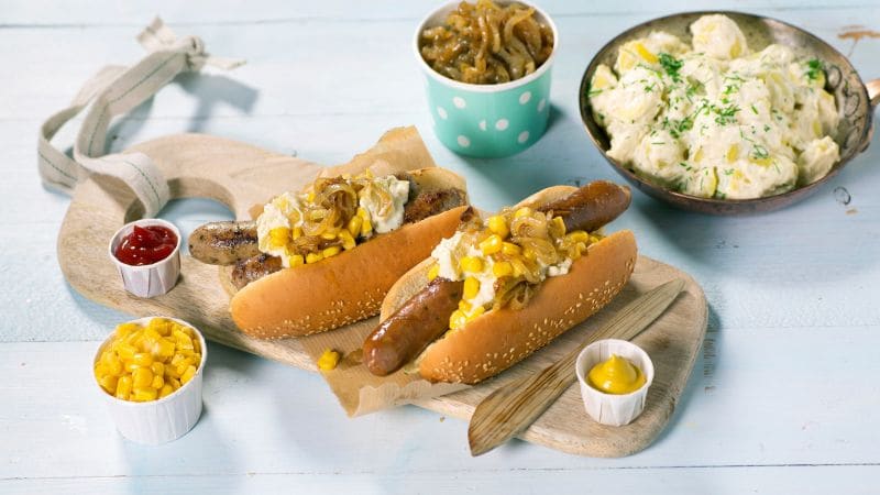 Tar du utgangspunkt i gode, grove pølser og spennende tilbehør som hjemmelaget potetsalat, karamellisert løk og smørdampet mais, kan pølser i brød bli ukas favoritt.