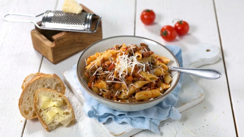 Har du vanskelig for å få barna til å spise grønnsaker, er denne retten genial. De fleste barn elsker pasta, og her blir grønnsakene kokt inn i sausen sammen med karbonadedeig og tomat.