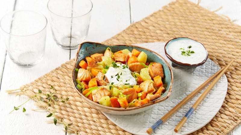 Denne gode pastaretten med fersk laks og deilige grønnsaker er mild på smak, og passer derfor ekstra godt for en kresen barnegane. Voksne vil også like den.