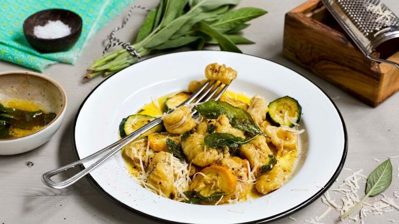 Små potetboller smaker nydelig med salviesmør og varmet squash. Det blir en enkel middagsrett, eller du gjør som italienerne, og spiser det som forrett, nattmat eller ved siden av langtidsstekt kjøtt.