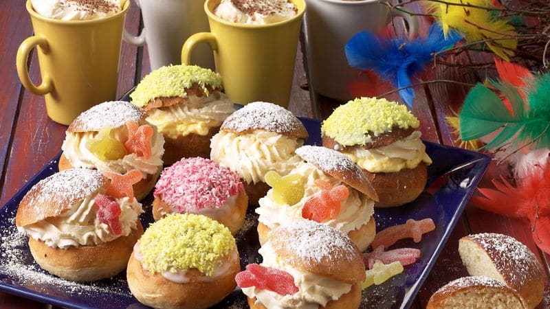 La barna få ta del i matlagingen. Med hveteboller som utgangspunkt finnes uante muligheter. Her får du oppskriften på flere festlige varianter som vil gjøre stor lykke i barnebursdager eller til fastelavn. Ha konditorfargen klar og la barna boltre seg med godis og herlige kremer.