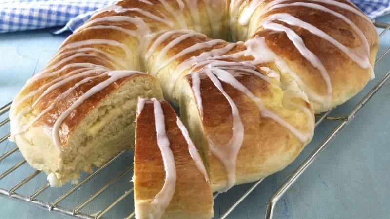 Herlig bakverk som vil få ben å gå på! Denne solskinnskringlen er virkelig fylt med smak av solskinn. Kombinasjonen appelsin, mandel og vanilje smaker nydelig, og med den lekre, gylne fargen ser den så fristende ut at alle må ha en bit.