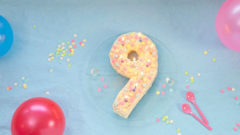 Oppskrift på morsom tallkake til niåringens bursdagsselskap. Gled både barn og voksne med kaken som er formet som et 9-tall. Lag en mørk sjokoladekake med ostekremtopping, og pynt kaken med alt som er gøy og godt av strøssel.