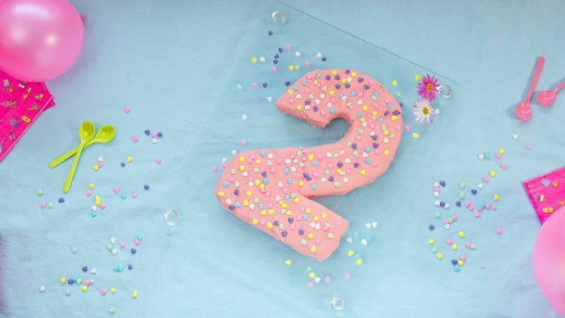 Oppskrift på morsom tallkake til toåringens bursdagsselskap. Gled både barn og voksne med kaken som er formet som et 2-tall. Lag en lys langpannekake med ostekrem på toppen. Slå deg løs med farger og pynt, og dere er klar for fest!