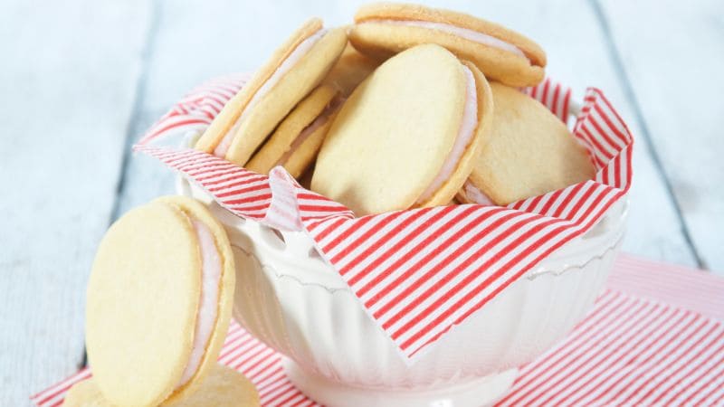 Oppskrift på en veldig god julekjeks med deilig fyll mellom lagene. Disse småkakene lager vi ofte til jul og mange kaller dem Saudakjeks. Sett ditt eget preg baksten ved å variere med forskjellig smaker og farger på fyllet, og fasong på kakene.