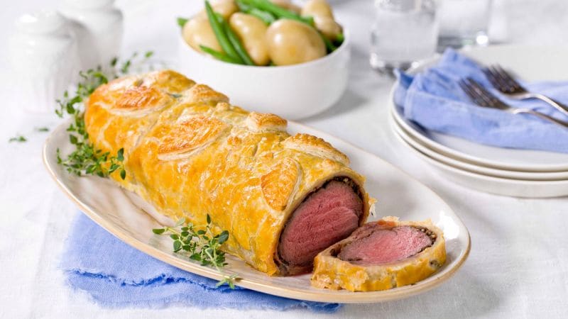 Med vår oppskrift på Biff Wellington vil du garantert imponere middagsgjestene. En rett som gjør seg godt på festbordet. Saftige indrefilet bakt inn i sprø butterdeig smaker fantastisk.