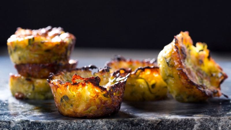 Trendy og sunn squashpannekake fylt med mozzarella og skinke er perfekt lunsjmat. Denne er gratinert med ekstra parmesan og smaker supert med en frisk salat. Enkelt å lage og en rett som imponerer!