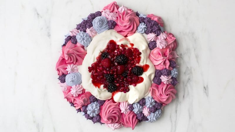 Marengs kan fort minne om et snødekket landskap, så hvorfor ikke lage en pavlovavariant til jul? Denne digge pavlovaen blir garantert midtpunktet på julebordet!