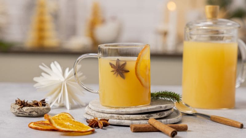Gløgg kan være mer enn den tradisjonelle tomtegløggen. Prøv denne varianten med appelsin- og eplejuice. Den smaker nydelig sammen med "julekrydderet" kanel og frisk ingefær.