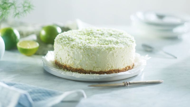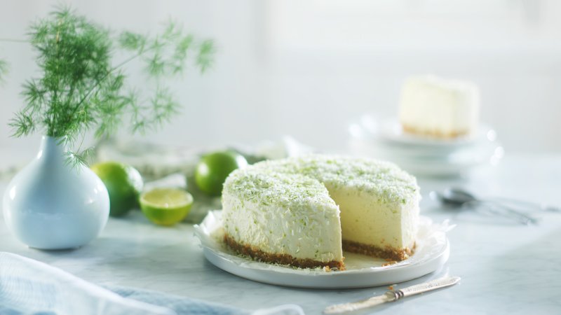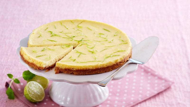 Dette er en frisk og god ostekake med lime. Den må være avkjølt før den tas ut av formen, og kan gjerne lages dagen før den skal serveres. Oppskriften gir ca. 12 biter ostekake.