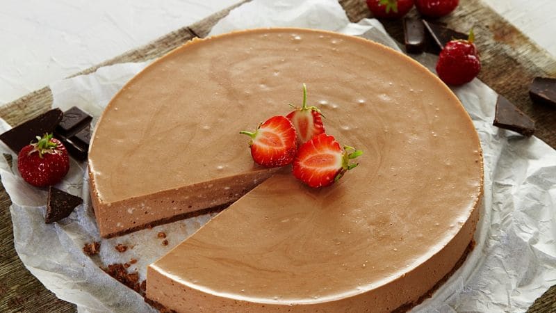 En bunn med havregryn og mørk sjokolade. Ostefromasj med syrlig smak av jordbær. Hele bær på toppen. Mer innbydende, smakfull og lekker kan en ostekake nesten ikke bli.