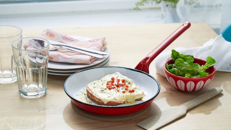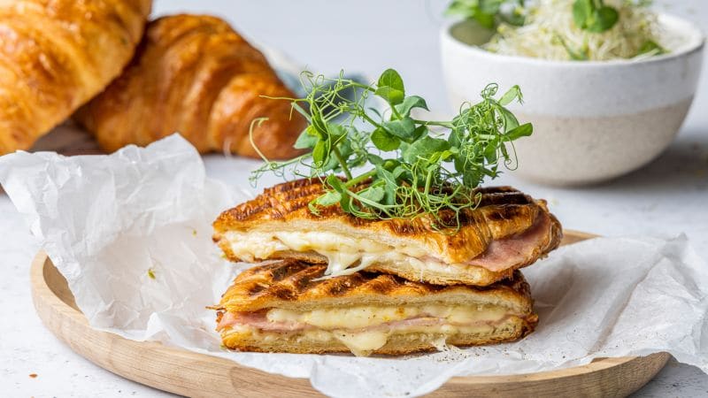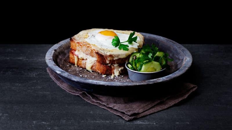 Croque Monsieur er en fransk nasjonalskatt som serveres på bistroer overalt i Frankrike. Den er litt mer komplisert å lage enn andre ostesmørbrød, fordi du må lage en hvit saus, men strevet er så absolutt verdt det!