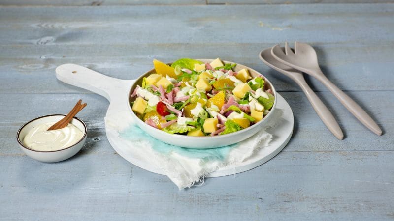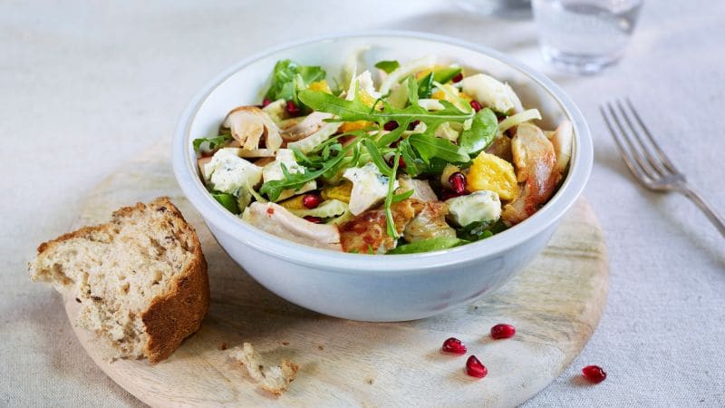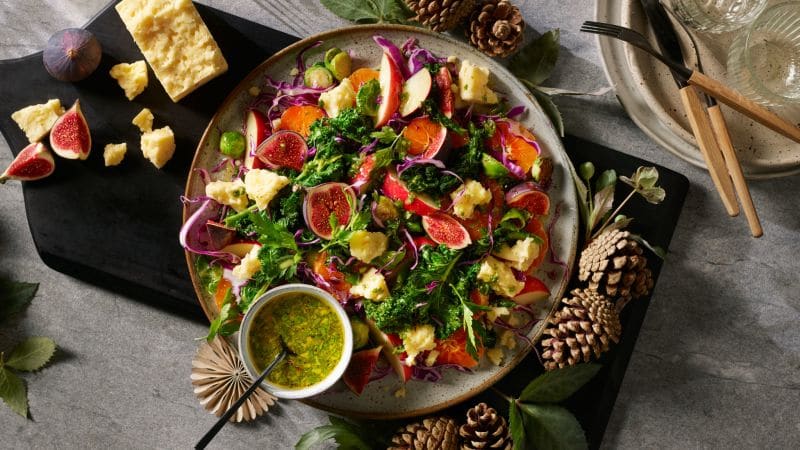 En herlig og frisk salat som smaker jul. Salaten er toppet med Østavind og eplevinagrette som gir en nydelig smak. Prøv den som tilbehør til julematen eller spis den alene.