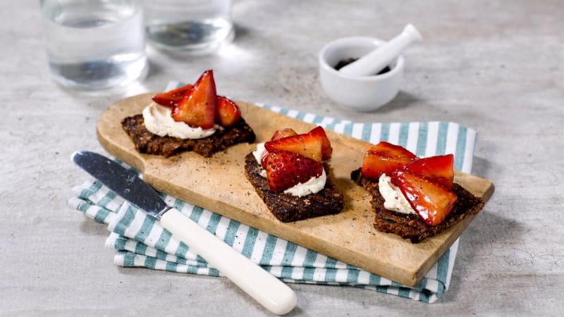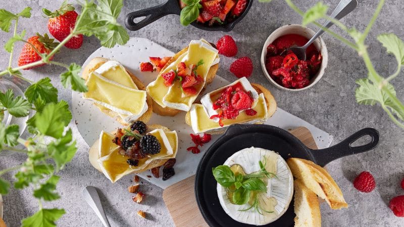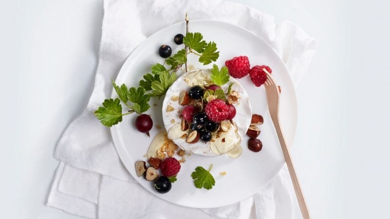 Kombinasjonen brie og jordbær er nydelig både som snacks og som avslutning på et måltid. Denne brien inneholder hel grønn pepper og gir en ekstra spiss på den superenkle retten.