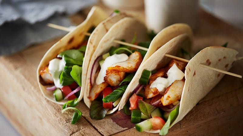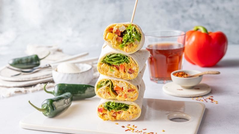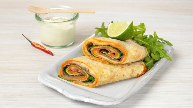 Innpakket mat er alltid populært og spesielt wrap står høyt på ønskelista hos mange. Her er en oppskrift med fullkornstortilla, ost, kylling, mango og søt chilidressing