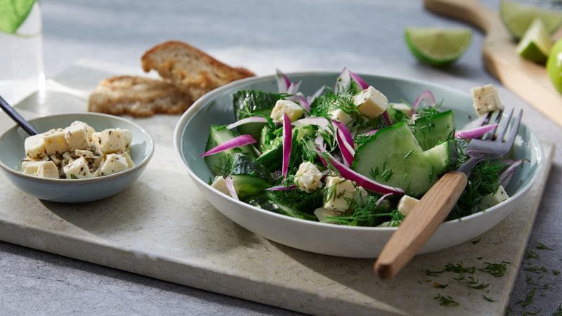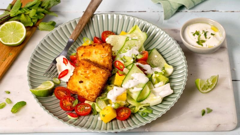 I det indiske kjøkken er fritert paneer, ferskost, en populær forrett, men sammen med rikelig av frisk og syrlig salat, synes vi det er perfekt som mettende, kjøttfri hovedrett.