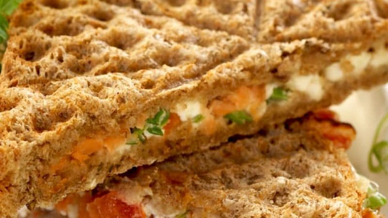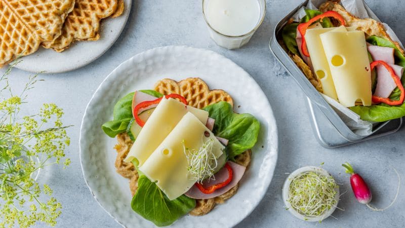 Vaffel i matpakka? Ja, klart det! Disse grove vaflene er gode med pålegg og grønnsaker på. Vaffelrøra er enkel og rask og holder flere dager i kjøleskapet.