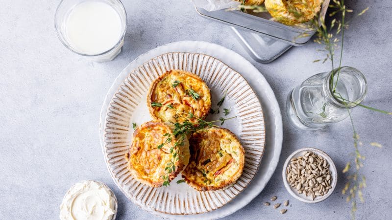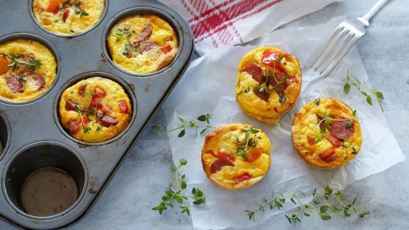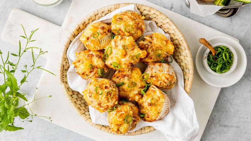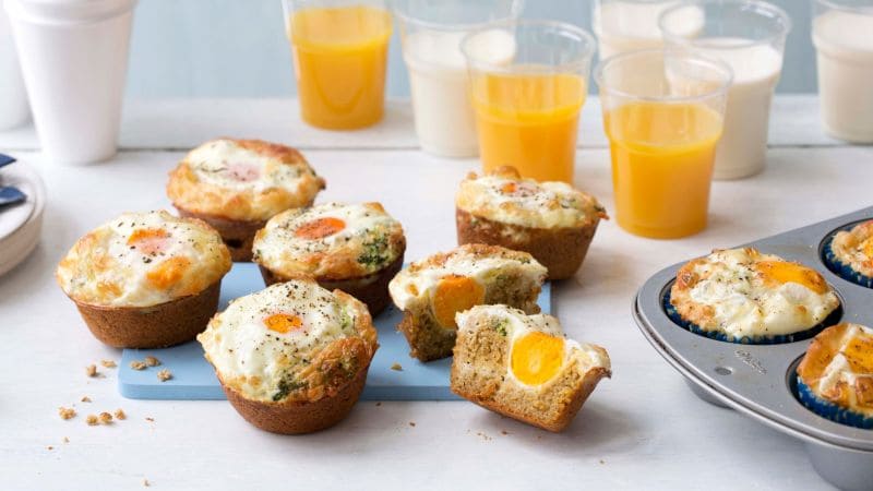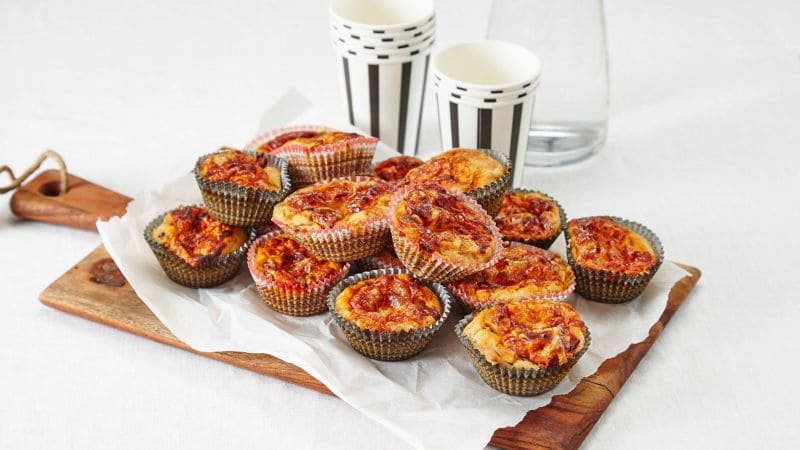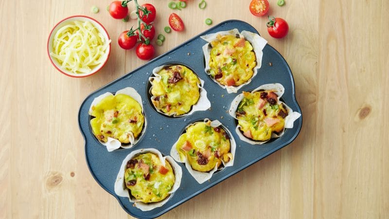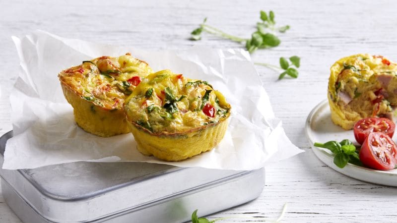 Oppskrift på gode og saftige matpakkemuffins med ost og skinke. Matmuffins er fine å servere til lunsj, ha med ut på piknik eller som et spennende innslag i matpakken. Muffinsene kan fryses, og dermed kan du alltid ha nistemat på lur!