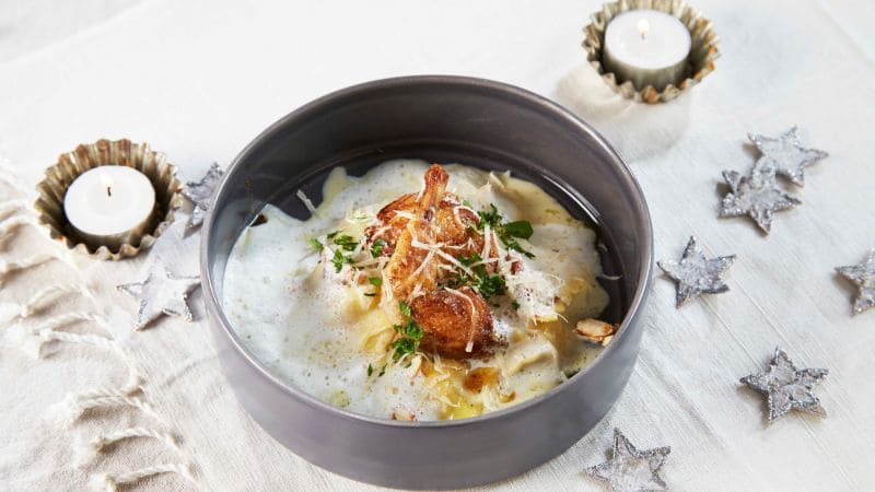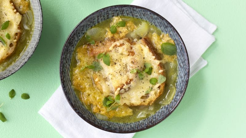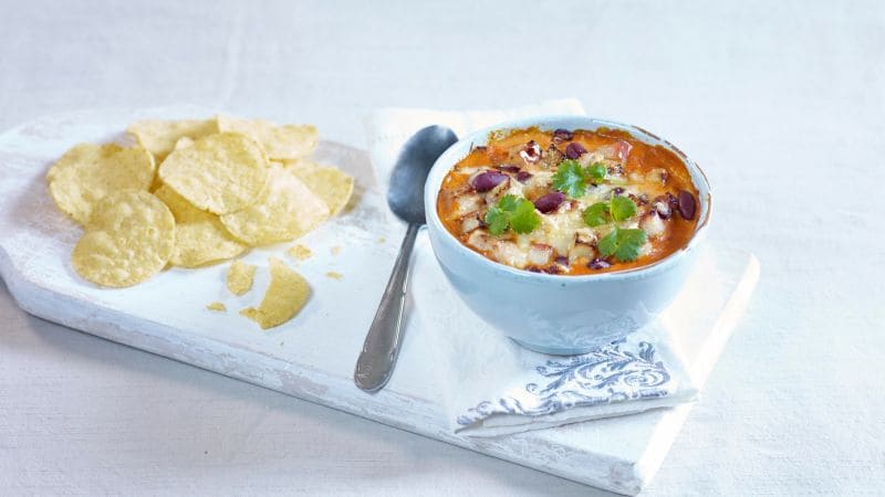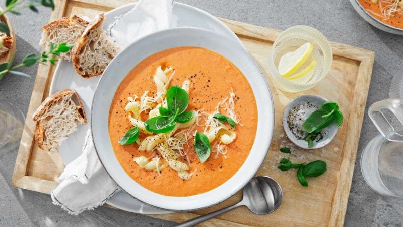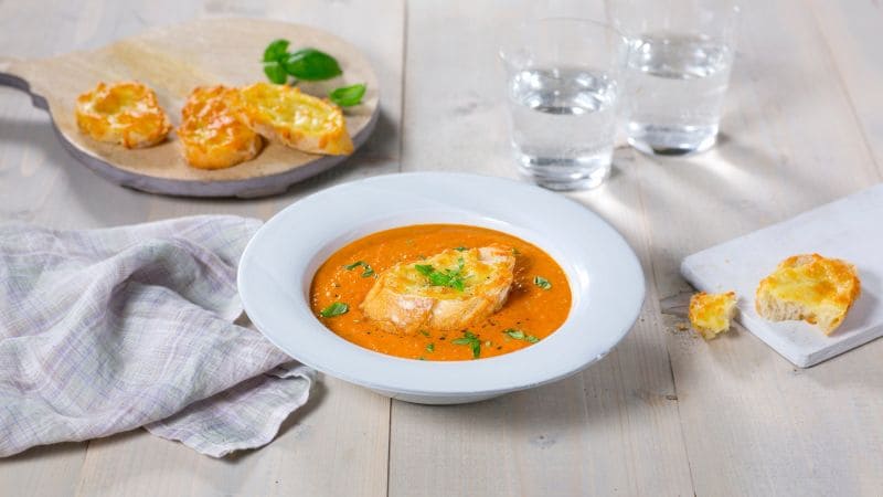 En rykende varm tomatsuppe med kylling, eple og potet varmer kroppen og trigger smaksløkene. Suppen gratineres i ovnen og får et herlig lokk av smeltet ost.