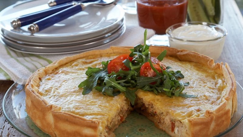 Oppskrift på enkel og rask pai med friskt og godt tilbehør. Bruk gjerne restene fra kyllingmiddagen tidligere i uken i denne paien. Supert å ta med ut på terrassen en sommerdag eller til å feire ukeslutt med familie og venner på fredagskvelden.