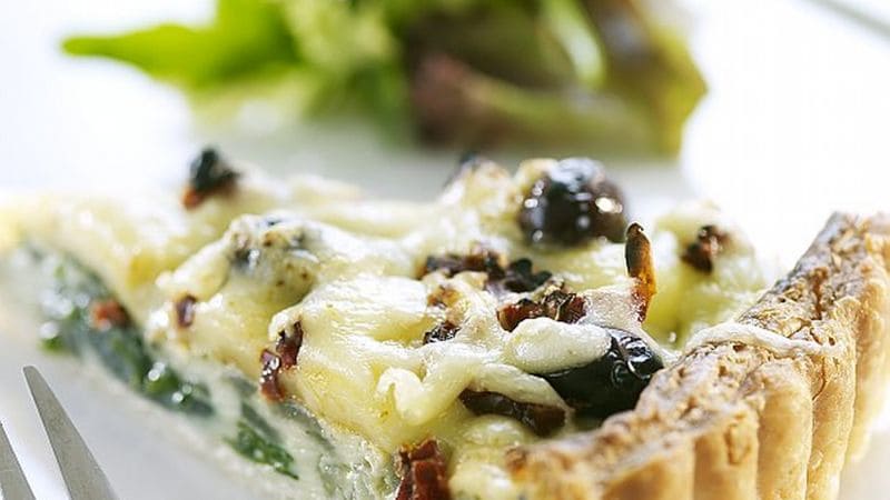 Pai passer til mange anledninger og kan fylles med nesten hva som helst. I denne ostepaien er det fersk spinat, soltørkede tomater og oliven. Ved siden av smaker det godt med en grønn salat og vinaigrette.