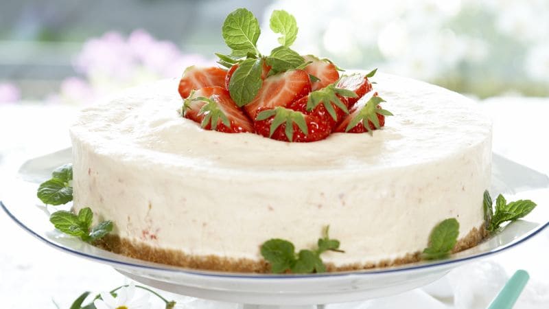 Jordbær er sommer og sommer er jordbær. Røde, saftige og gode; her er den perfekte desserten til festen eller kaken på kaffebordet. Denne frosne ostekaken er grei å lage uten stekeovn, og bør holde til 8 persjoner.