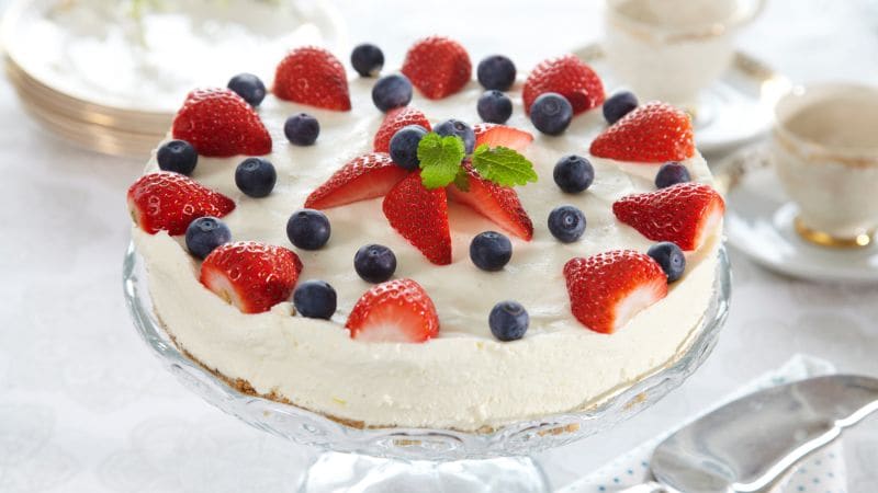Det finnes nesten ikke én eneste anledning hvor man ikke setter pris på å få servert en god kake! Her er oppskrift på en frossen ostekake laget med kremost og kremfløte og pyntet med friske bær. Husk å beregne minst fire timer for kaken å stå i fryseren før servering. God fornøyelse!