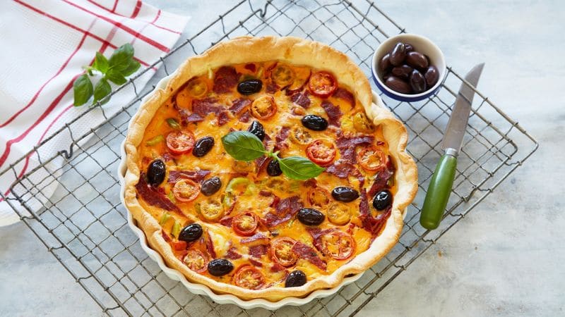 I denne oppskriften på italiensk salamipai smelter smakene fra Middelhavet sammen - pesto, salami, og god ost. Paien er suveren når du skal ha selskap, og den er like god til en buffet som til middag eller lunsj.