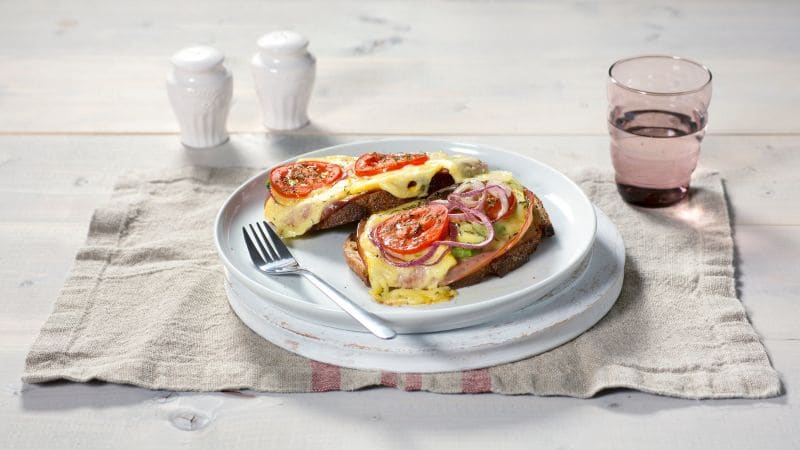 Her får du et realt ostesmørbrød på fransk vis. Skinke, tomat, løk og sennep gir gode og kraftige smaker, og med avokado i tillegg er dette enkel, rask og mettende hverdagsmiddag.