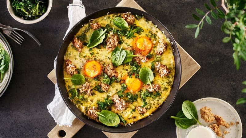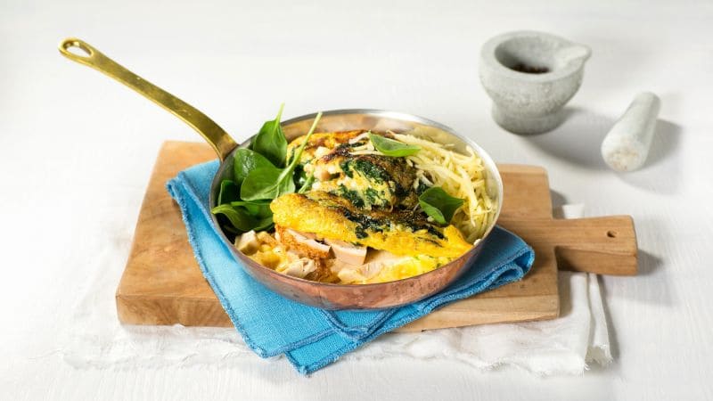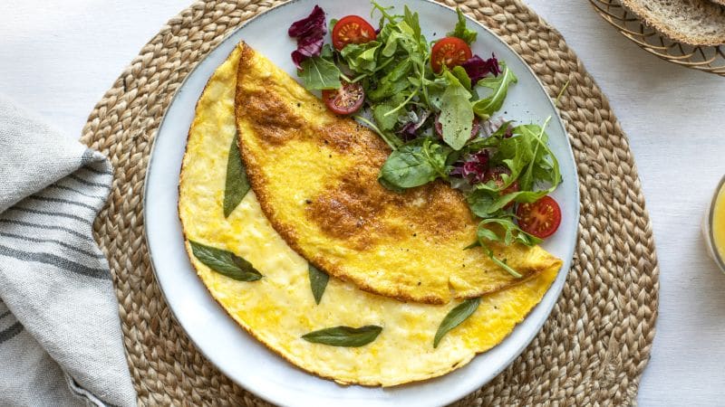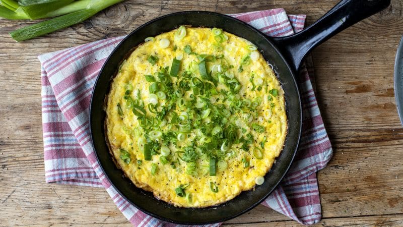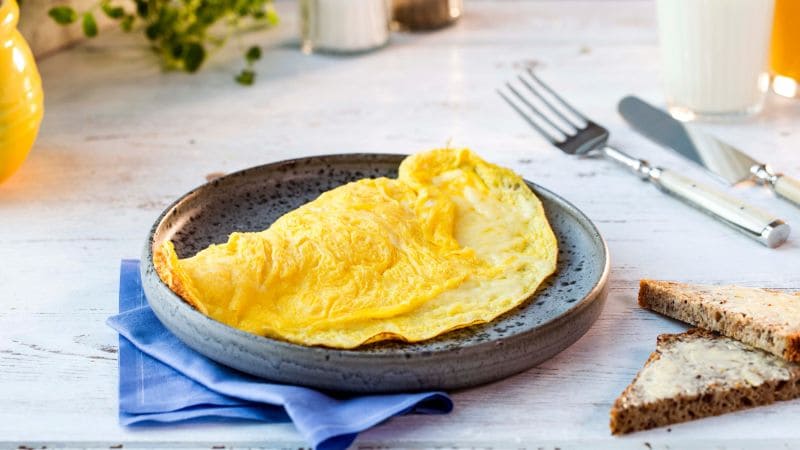 Omelett er fort gjort å lage, og den metter veldig godt. Dermed passer den også til middag, dersom du ønsker å lage noe kjapt. Denne enkle omeletten er like god varm som kald. Server gjerne med en salat til, eller på brød som her.