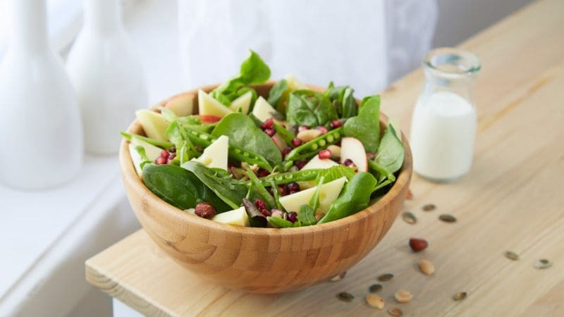 Salat blir man sjelden lei av og i allefall ikke slike som denne! Kan det friste med en Norvegiasalat med syrlig granateple, sukkererter, søtt eple, ristede nøtter og enkel limedressing?
