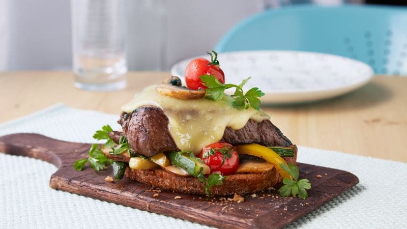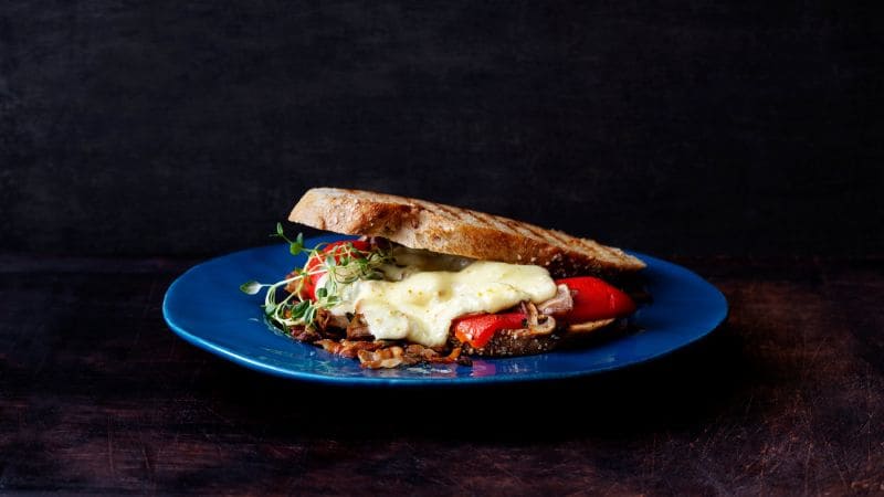 Levels er et ostesmørbrød både for øye og gane. Med ingrediensene skjært i skiver og lagt lagvis ser det både delikat og kult ut. Biffen gjør at dette ostesmørbrødet kan fungere godt som kveldskos og som et større måltid. Oppskriften er innsendt av Daniel Basit.