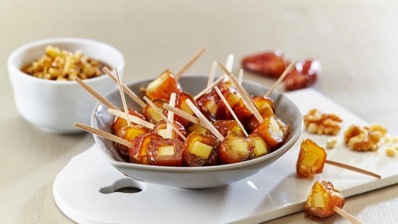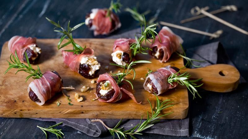 Fantastisk kombinasjon av kremost, bacon, dadler, chili og rosmarin. En sikker vinner på tapasbordet, eller som en forrett på deling, men også som kos på lørdagskvelden.