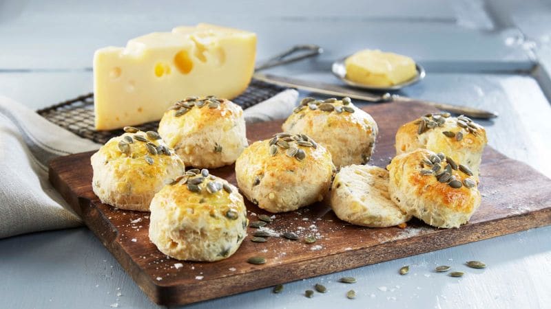 Disse kjeksene hører med på ostebordet og smaker nydelig til salater og suppe. Med både vellagret Edamer og kajennepepper får de en kraftig og god smak.