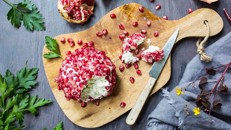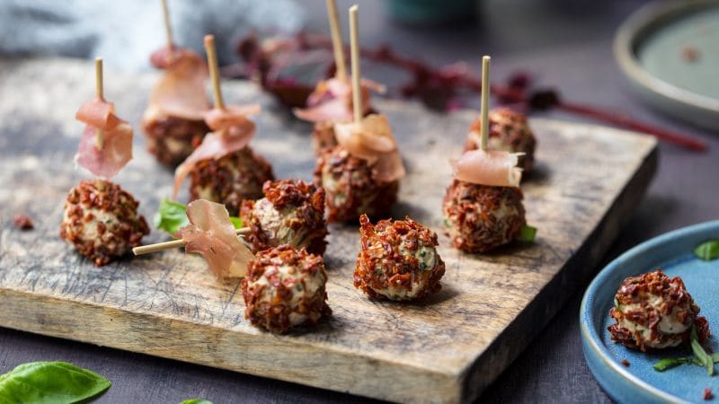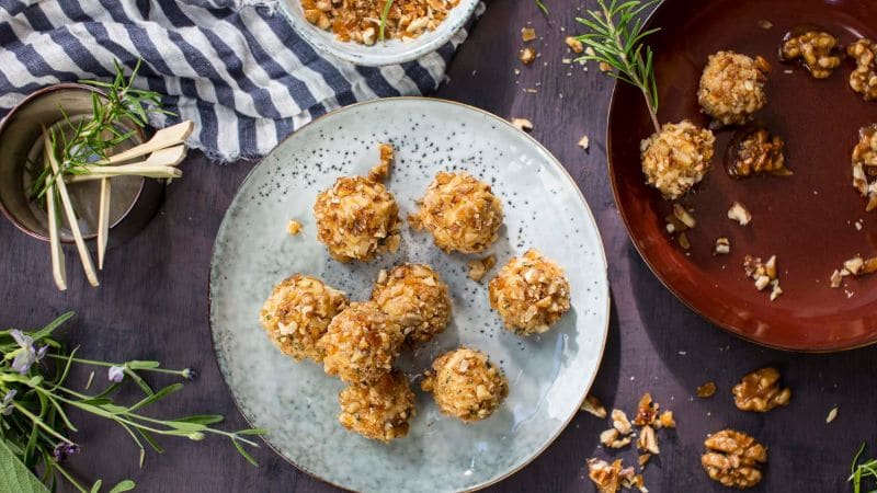 Smakfulle osteboller med eksotisk granateple, appelsinskall og persille. De aromatiske, litt syrlige frøene, gjør seg fantastisk godt sammen med osten.