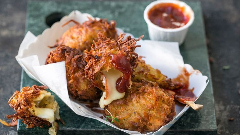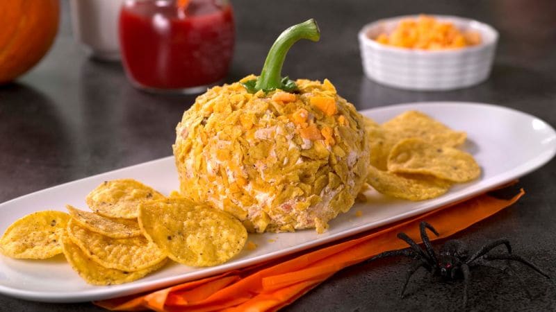 Alle elsker taco og nachochips. Her får du favorittretten servert som cheese balls formet som gresskar! Ja, alt kan skje på Halloween. Ostekula trenger 2 timer i kjøleskapet så den får satt seg.
