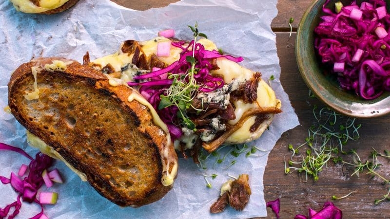 Reuben er et ostesmørbrød innført og laget av tyske immigranter i Amerika. Her brukes det pastrami (saltet, røkt og krydret oksekjøtt) og sauerkraut sammen på rugbrød, med en topping av smeltet ost. Høres rart ut, smaker fantastisk!