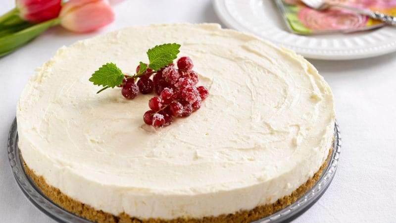 Oppskrift på enkel, klassisk og smakfull ostekake som ikke skal stekes. Denne milde ostekaken har god smak av sitron og er fin å servere til selskap i hagen, 17. mai-festen eller som dessert. Husk at kaken trenger minst tre-fire timer til å stivne og kan dermed med fordel lages dagen før.