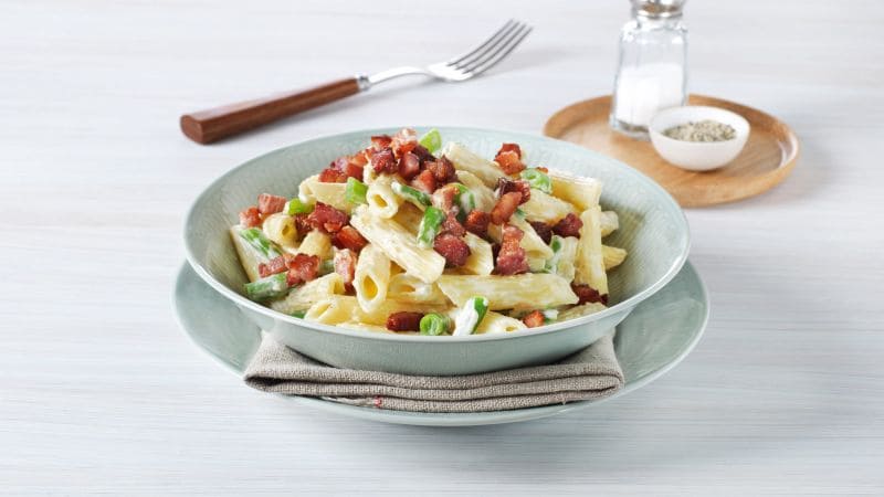 Pancetta er en italiensk spesialitet av urøkt bacon som er tørket med krydder, salt og pepper. Denne pastaretten er både frisk, smaksrik og enkel å tilberede.