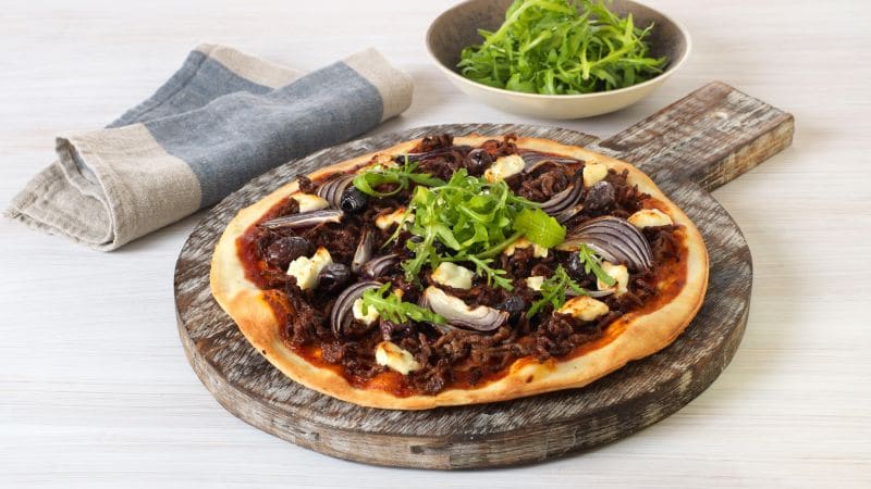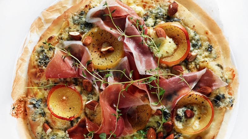 I denne pizzaen møter salt og fyldig blåmuggost søt og fruktig pære og knasende karamelliserte pecannøtter. Pizzaen kan nytes som hovedrett, men kan også serveres som tapas eller fingermat i festlig lag.
